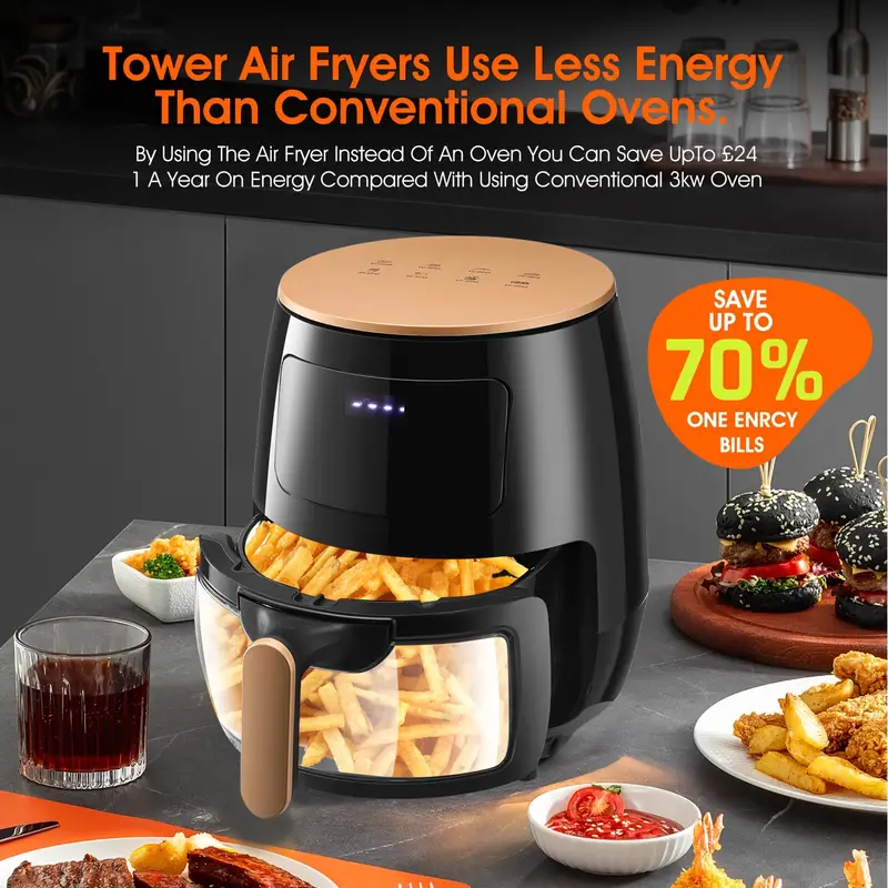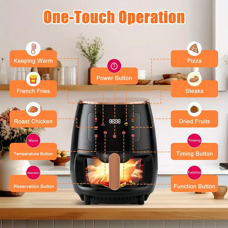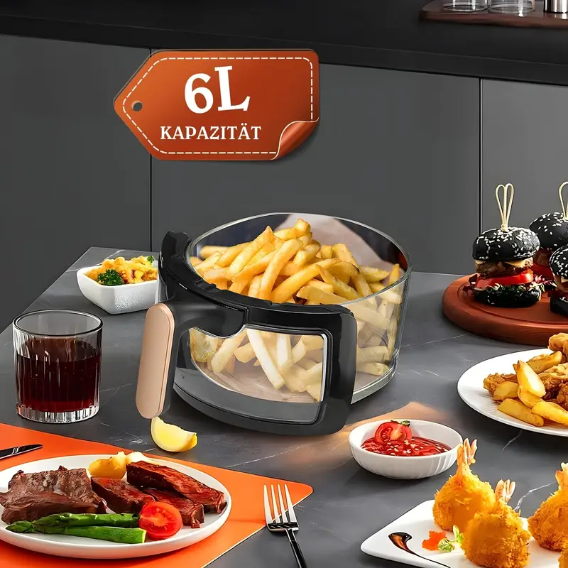 Frytkownica na gorące powietrze, 6 Litrów, cyfrowy ekran dotykowy LED. Bez Oleju. 1700 W