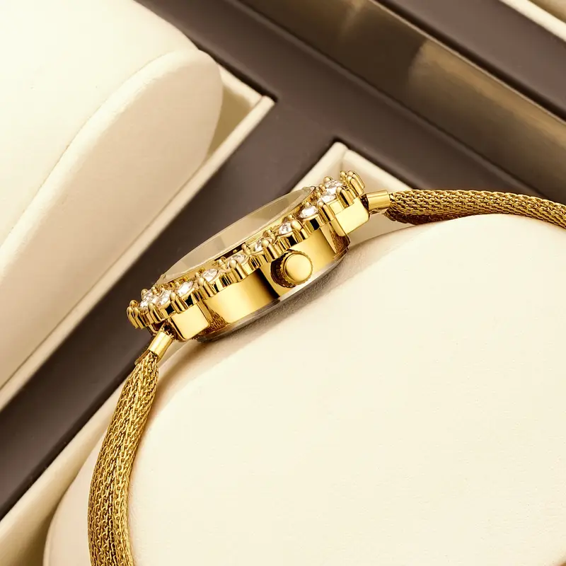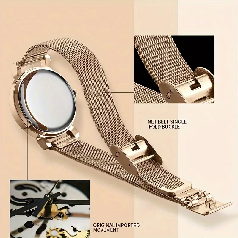 JELLOO - 3.35cm HD pełny ekran dotykowy, połączenia bezprzewodowe, wodoodporność IP68, akumulator litowo-jonowy, akcenty złotych i perłowych, idealny do iPhone'a i Androida, stylowy akcesorium.