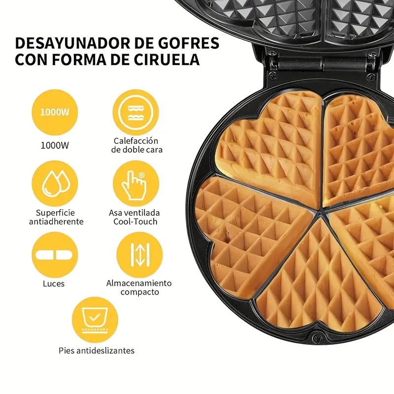 5 serduszek, gofrownica elektryczna. Łatwa w czyszczeniu, idealne na śniadanie.